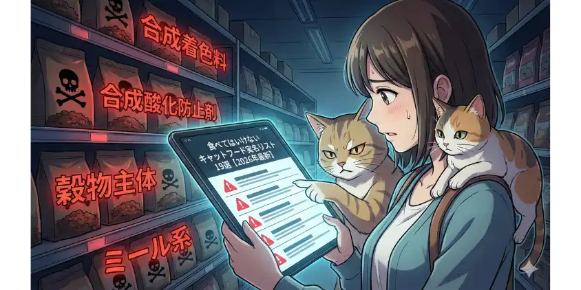 この記事では、食べてはいけないキャットフードの実名リストはもちろん、危険な原材料・添加物の見分け方、そして安全なフードへの切り替え方法まで、この1記事で全てわかるように徹底解説しています。